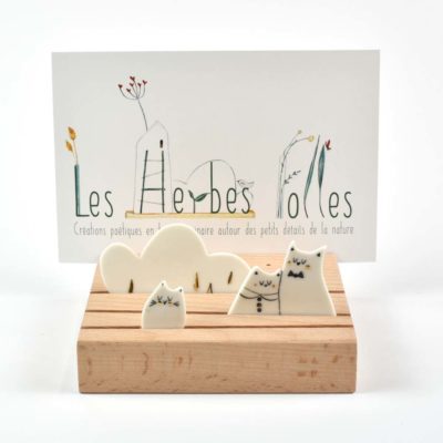 Plusieurs entailles pouvant recevoir les éléments décoratifs en porcelaine façonnés à la main, ainsi qu’une carte ou photo.