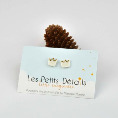 Forme en porcelaine découpée et façonnée patiemment à la main, cuite plusieurs fois à haute température avant d’être fixée sur une monture en argent 925 qui vous évitera tout risque d’allergie.
