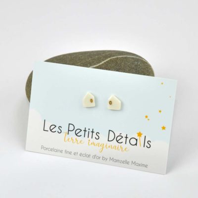 Forme en porcelaine découpée et façonnée patiemment à la main, cuite plusieurs fois à haute température avant d’être fixée sur une monture en argent 925 qui vous évitera tout risque d’allergie.