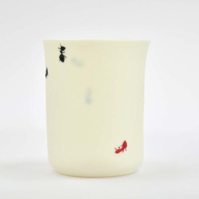 Porcelaine teintée artisanalement et cuite plusieurs fois à haute température.