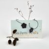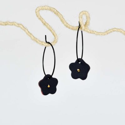 Forme en porcelaine découpée et façonnée patiemment à la main, cuite plusieurs fois à haute température avant d’être fixée sur une monture en laiton teinté noir – anallergique qui vous évitera tout risque d’allergie.